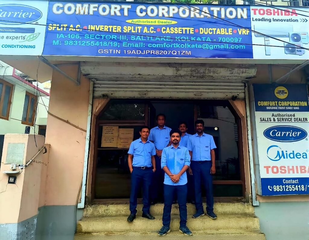 Discover the Legacy of Comfort Corporation: Your Trusted Authorized Sales and Service Dealer of Carrier, Midea, and Toshiba in Kolkata Since 1995.For over two decades, Comfort Corporation has been the pinnacle of excellence in the air conditioning industry in Kolkata. As your dedicated authorized sales and service dealer for Carrier, Midea, and Toshiba, we take pride in delivering top-notch cooling solutions that transform spaces into havens of comfort.  With a rich history dating back to 1995, we’ve consistently offered the latest advancements in AC technology to our valued customers. Our mission is not just to provide air conditioning units but to craft experiences that enhance your lifestyle. With years of experience, our team boasts unmatched technical know-how to recommend the perfect AC solution tailored to your needs.  We are known for commitment to quality, professionalism, and customer satisfaction.